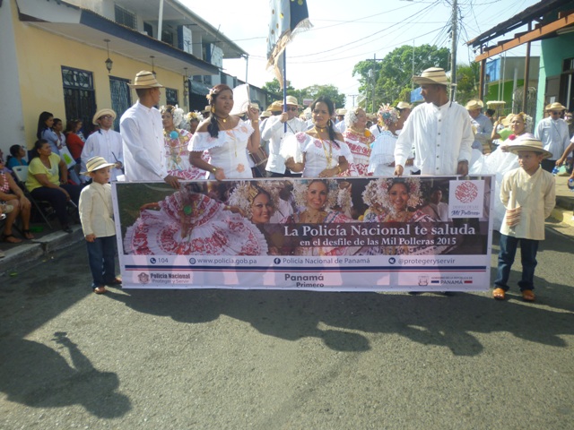 El desfile de Las Mil Polleras, se ha convertido en toda una tradición en la ciudad de Las Tablas, y la Zona de Policía de Veraguas, no se quedó atrás en su participación celebrando el 10 de enero donde se dejó ver mucho lujo y esplendor. A lo largo de la ruta los aplausos y felicitaciones no se hicieron esperar para la representación que estaba conformada por unidades policiales, personal no juramentado y miembros del programa de Vecinos Vigilantes, quienes lucieron vestidos estilizados, polleras de lujos y montuno entre otros atuendos. El recorrido estuvo acompañado de un alegre tamborito, de esta manera la Policía rindió tributo al folclore. Para las unidades policiales de la 9va. Zona Policial, este fue un privilegio el poder participar de tan majestuoso desfile en donde se resaltan las costumbres de los pueblos que conforman este territorio istmeño. |