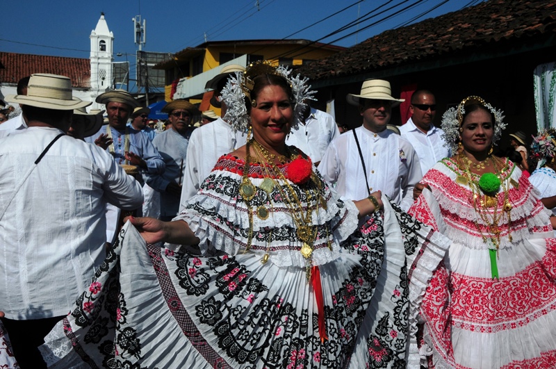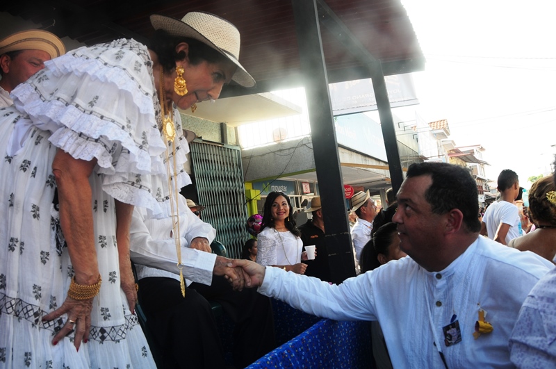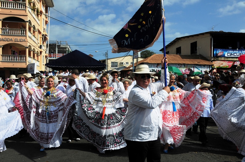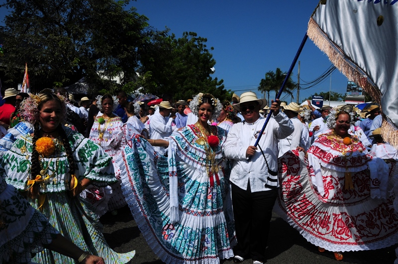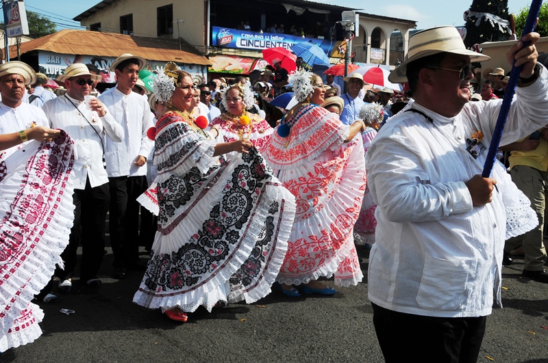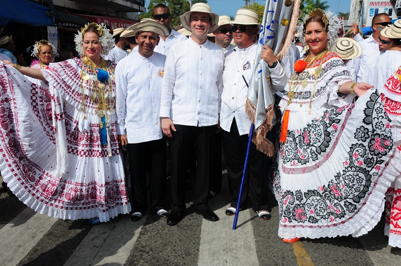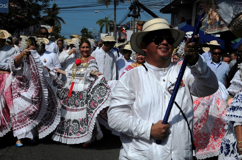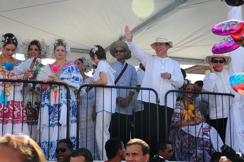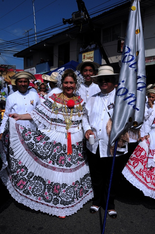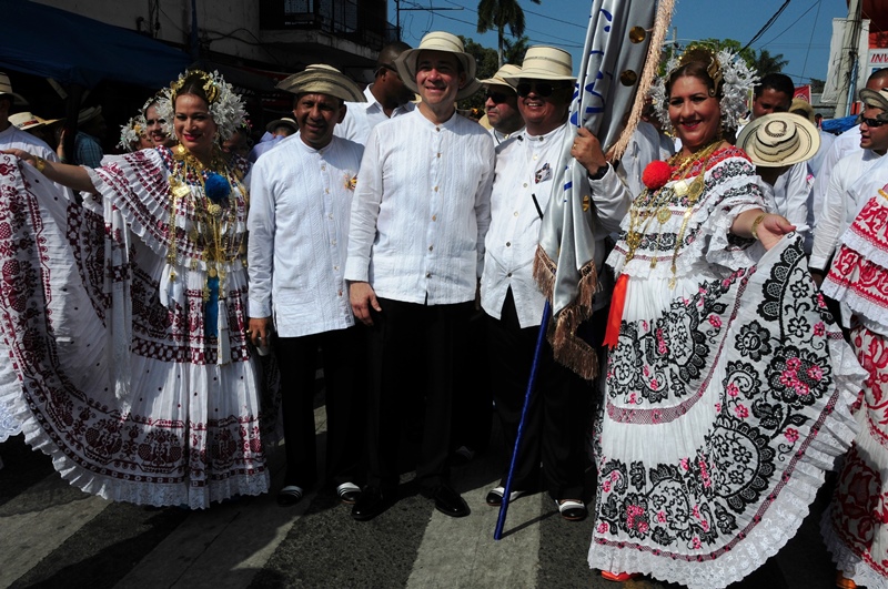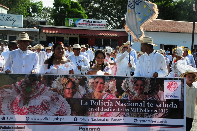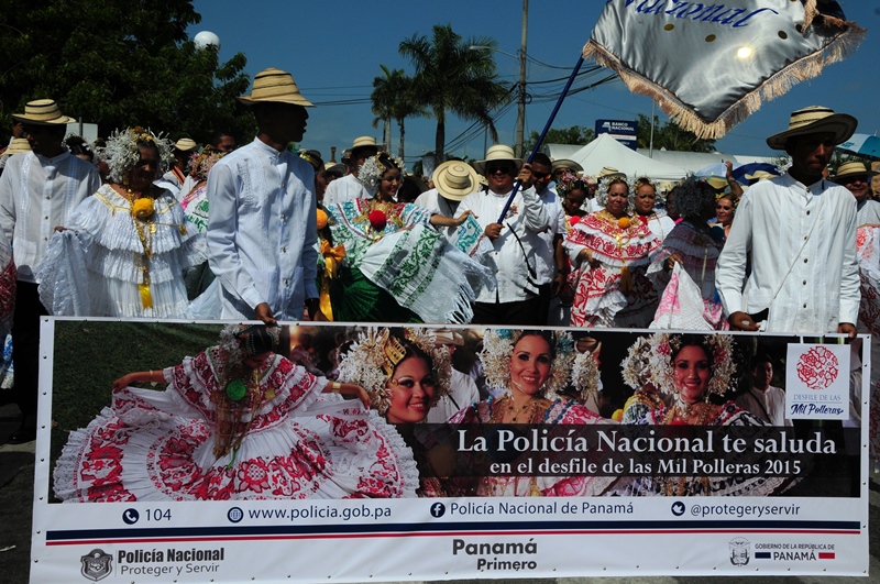 Con mucho lujo y donaire que caracteriza ataviarse con los diferentes vestidos típicos tanto para el hombre como para la mujer, la Policía Nacional participó este 10 de enero de 2015, del lucido desfile de las Mil Polleras, realizado en el distrito de Las Tablas, provincia de Los Santos. Portando la bandera, el Director General de la Policía Nacional, Omar Ariel Pinzón Marín, acompañado de su esposa Nacelis e hijos; y equipo de trabajo, resaltaron en este folclórico encuentro, el valor de lo autóctono y el porqué de nuestra constante misión de proteger y preservar la familia panameña. “Estamos muy orgullosos de ser panameños y de ser parte de estas actividades, como en otras ocasiones he mencionado, no le daremos tregua al delito, por tal motivo seguiremos trabajando para brindarle más seguridad a todo Panamá, para que actividades como esta, perduren y se realicen en completo orden para el disfrute de todos”, expresó Omar Pinzón, durante su recorrido por las avenidas del pueblo tableño. Con una delegación de más de 800 unidades y dos carros alegóricos hicieron de la Policía Nacional, el deleite de todos los presentes con su participación en el desfile de las Mil Polleras 2015.