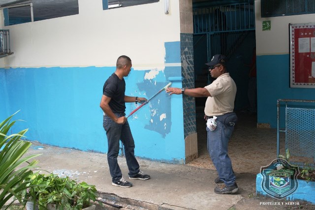 El Director General de la Policía Nacional (PN), Omar Ariel Pinzón Marín, supervisó este martes, una jornada de limpieza en la escuela Jerónimo De La Ossa, ubicada en el distrito de San Miguelito. Dicha actividad de ornato y aseo, se desarrolló desde tempranas horas del día y contó con el apoyo del personal uniformado y estudiantes del Instituto Superior Policial (ISPOL). Los mismos cortaron el espeso herbazal que se encontraba sobre el cuadro de fútbol, limpiaron las aulas de clases, barrieron todas los salones y pasillos. Además pintaron las paredes de la escuela. El Director General de la PN, Omar Pinzón, aparte de supervisar la acción policial, también recorrió las instalaciones, comprometiéndose a contribuir con la reparación y el mantenimiento de la infraestructura del plantel. Durante su recorrdio, estuvo acompañado por el Comisionado y Director Nacional de Infraestructura, Alonso Vega Pino. "Estas labores forman parte del trabajo en conjunto que realiza la Policía Nacional con el Ministerio de Educación en todo el país para fortalecer el programa "Mi Escuela Primero", destacó el director Omar Pinzón. De manera simultánea, se desarrollaron otras tres jornadas de limpiezas en tres escuelas de San Miguelito. |