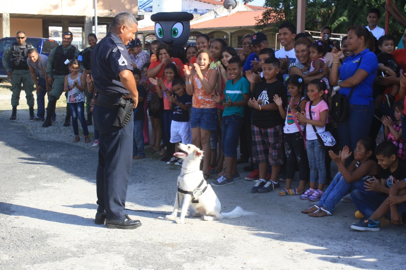 Una tarde de diversión, sorpresas, juegos, golosinas, pinta carita, presentaciones de canes y mucho más, fueron unas de las tantas atracciones que disfrutaron los pequeñines del sector de la 9 de enero, en el corregimiento de Amelia Denis de Icaza, en el distrito de San Miguelito. Un aproximado de 50 niños se dieron cita en la Junta comunal de este sector, donde los mismos pudieron gozar y saltar junto a las unidades policiales. |