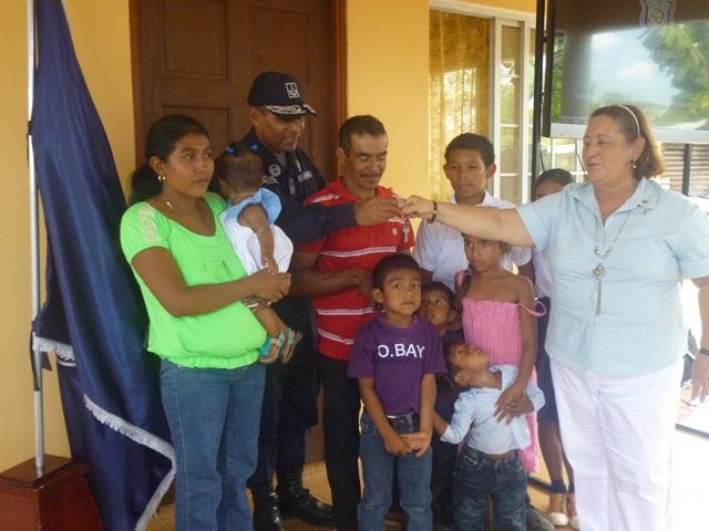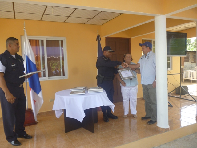 Luchan a pesar de las carencias para brindarles un mejor futuro a sus hijos. La Zona Policial de Veraguas, por sexto año consecutivo hizo entrega de una vivienda, esta vez a la familia Rodríguez Jiménez, en el sector de Cangrejal, en el distrito de Santiago. Desde el 2009, la Zona Policial de Veraguas, año tras año como parte del programa de prevención que lleva adelante la Policía Nacional, se ha caracterizado en la construcción de una casa para una familia de situación de pobreza extrema. Es por ello, que a través de los programas que lleva adelante la Policía de Menores en esta provincia, se escogieron a los hermanos Rodríguez Jiménez, quienes estudian en la escuela “José de Los Santos Gutierrez”, en el sector de La Mata. La profesora Olga Pereira de González, Gobernadora de la provincia de Veraguas, expresó sentirse muy complacida con el trabajo que realiza cada una de las unidades que laboran a diario en beneficio de la comunidad, haciendo alarde al lema de “Proteger y Servir”. El Comisionado Gilberto Cuevas, jefe de la Zona Policial de Veraguas, en nombre del señor Director General de la Policía Nacional, Omar A. Pinzón M., agradeció a los empresarios de esta provincia por el aporte de materiales y decoraciones para que este proyecto se llevará a cabo. Por su parte, el señor Herminio Rodríguez, jefe del hogar, no pudo ocultar su felicidad y satisfecho con todos aquellos que pusieron su granito de arena y sobre todo con la Policía Nacional, para hacer posible la construcción de su casa que consta de tres habitaciones, sala, comedor, cocina y un baño. "Me han mejorado la calidad de vida, la de mi esposa y a mis siete hijos", destacó Herminio Rodríguez.