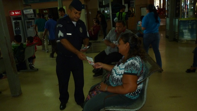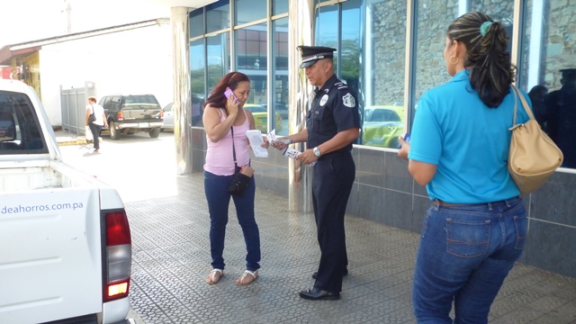 Unidades de la Zona de Policía de Herrera realizaron una jornada de volanteo en diferentes puntos del distrito de Chitré, promoviendo la campaña "No al maltrato infantil". Esta actividad estuvo encabezada por unidades de la Policía de la Niñez y Adolescencia y participaron unidades regulares, administrativas y personal no juramentado. Las unidades entregaban las volantes y ofrecían a las personas una explicación breve de los daños que pueden ocasionar el maltrato infantil y los tipos de maltratos. También se le exhortó a denunciar como ciudadano, en momento que conozca que se esta dando un caso de esta índole. |