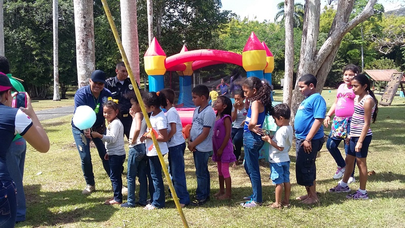 En medio de la belleza natural que envuelve el Parque Summit, los hijos de las unidades policiales que laboran en la Dirección Nacional de Docencia de la Policía Nacional, celebraron un gran momento junto a sus padres y amigos. Las sonrisas producto de la diversión que se vivió en Summit, fue evidente en los rostros de los más de 32 niños y niñas que participaron en este agasajo en su honor. El Comisionado y Director Nacional de Docencia, Jorge Luis Escobar aprovechó la oportunidad para compartir con los hijos de sus unidades, haciéndoles saber lo orgulloso que se siente trabajar con sus padres y los exhortó a divertirse sanamente y a portase bien en todo momento. Con muchos obsequios, dulces, refrescos, piñatas y los saltos en el brinca brinca, hicieron de este momento, una fiesta sin igual.