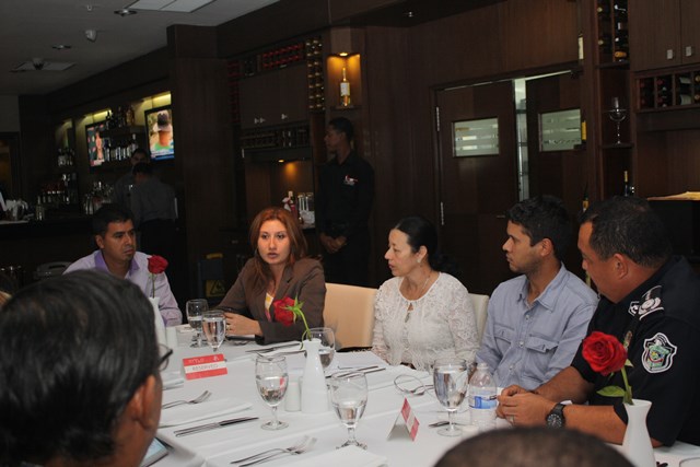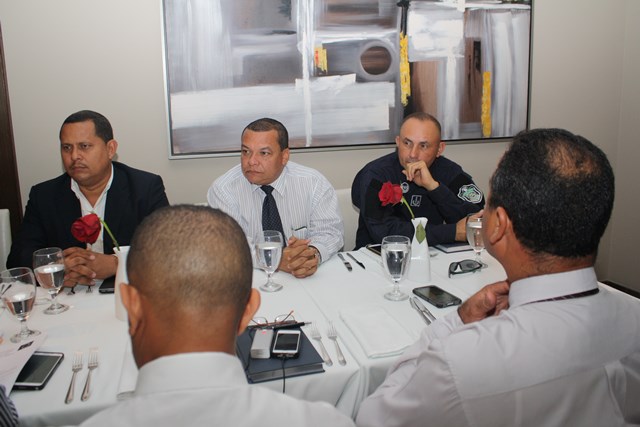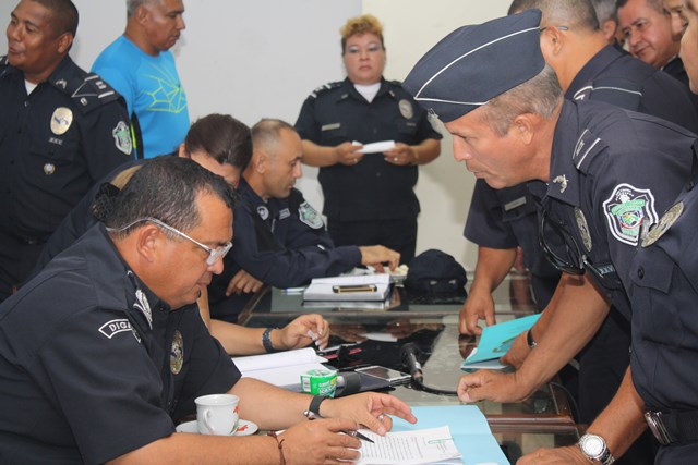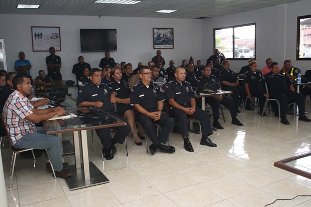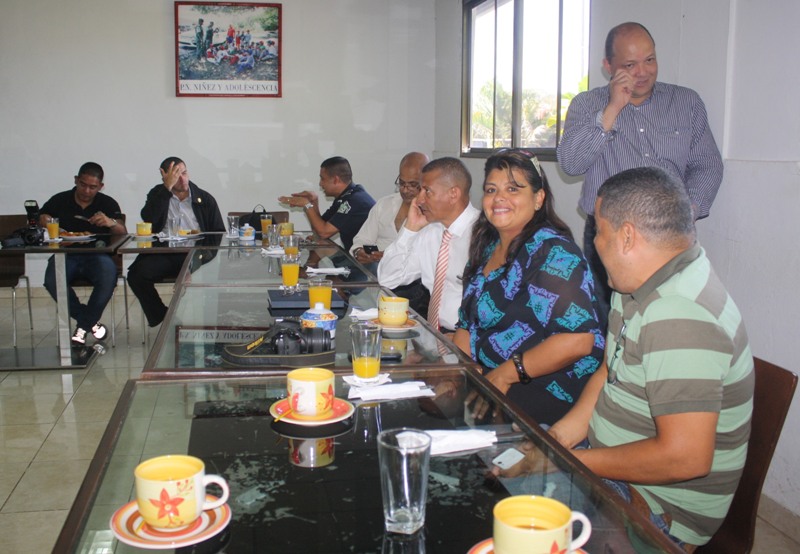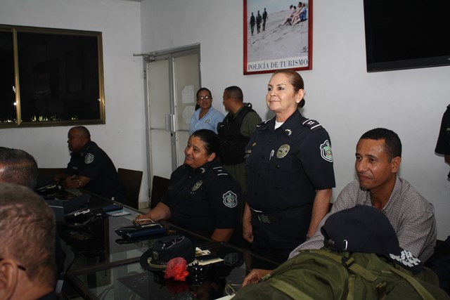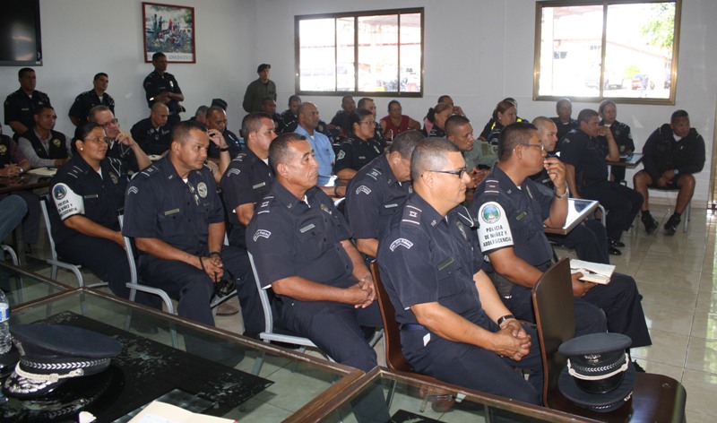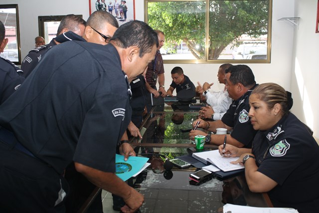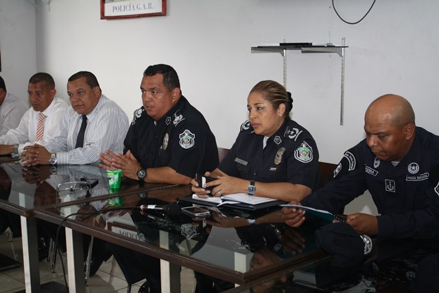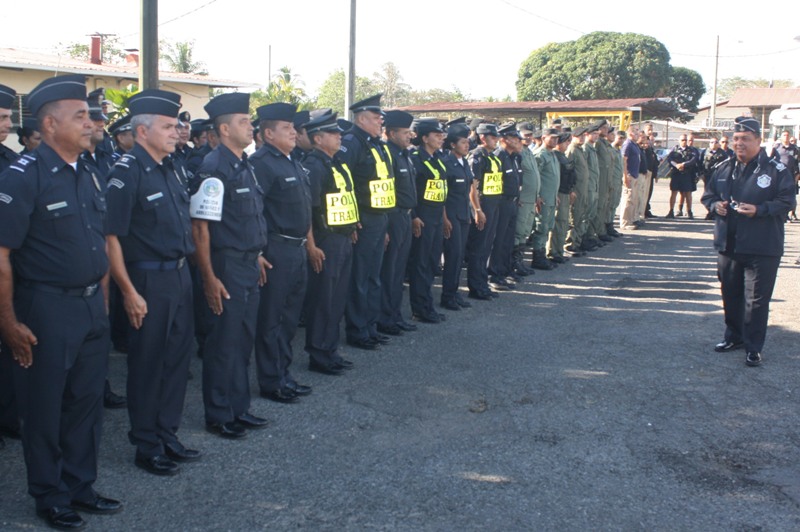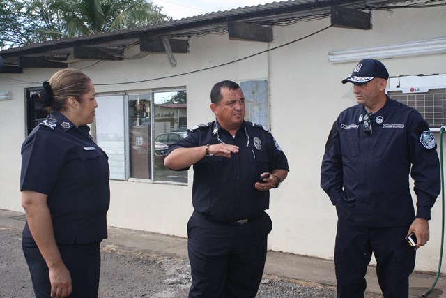 El Director General de la Policía Nacional, Omar Ariel Pinzón Marín, junto a su equipo de trabajo visitó este martes 20 de enero las instalaciones de la 4ta zona policial de Chiriquí. Durante la visita del señor Director a la zona policial chiricano se reunió con las unidades del área, allí le mostró todo su respaldo en la labor que a diario realizan para llevar seguridad a los panameños. Pinzón hizo énfasis en diferentes casos policivos que se han registrado recientemente en el sector y que en menos de 24 horas han sido resueltos. El jefe policial elogió la labor que realiza el bloque de búsqueda que está constituido por las Fuerzas Especiales del Servicio de Protección Institucional, compuesto por cien hombres, quienes trabajan activamente con inteligencia de la Dirección Nacional de Inteligencia Policial y Dirección Investigación Judicial, realizando constantemente allanamientos. “Se han doblado los números de acciones policiales contra las pandillas y en el último semestre se vieron los resultados y en la provincia de Chiriquí tenemos el equipo trabajando, se ha dotado a la zona con diferentes vehículos policiales, donde el Señor Presidente de la República, Juan Carlos Varela vino con programas preventivos”, agregó el Director. También hizo una invitación a todos los jóvenes a que se unan a la fila de Policía Nacional, ya que ofrece grandes beneficios tanto para ellos como a su familia. Reveló que constantemente se están graduando de 300 a 400 hombres y mujeres. El Director se hizo acompañar por la Comisionada Oris Jaén, Secretaria General; Comisionado Alonso Vega Pino, Director de Ingeniería e Infraestructura; Comisionado Marcos Córdoba, Director de Investigación Judicial: Licenciado Olmedo Moreno, Director de Responsabilidad Policial y el Director de Relaciones Públicas, Licenciado Didacio Camargo. Igualmente, en el acto estuvo presente el Jefe de zona, Comisionado Abdul Ledezma, el Subcomisionado José Flores, ejecutivo de esta zona policial, jefes de las diferentes áreas, Oficiales, Clases, Agentes y Personal de los Medios de Comunicación, quienes mantuvieron un dialogo con el Director de la Policía Nacional y un desayuno. |