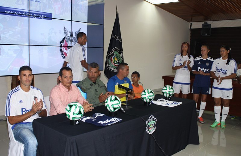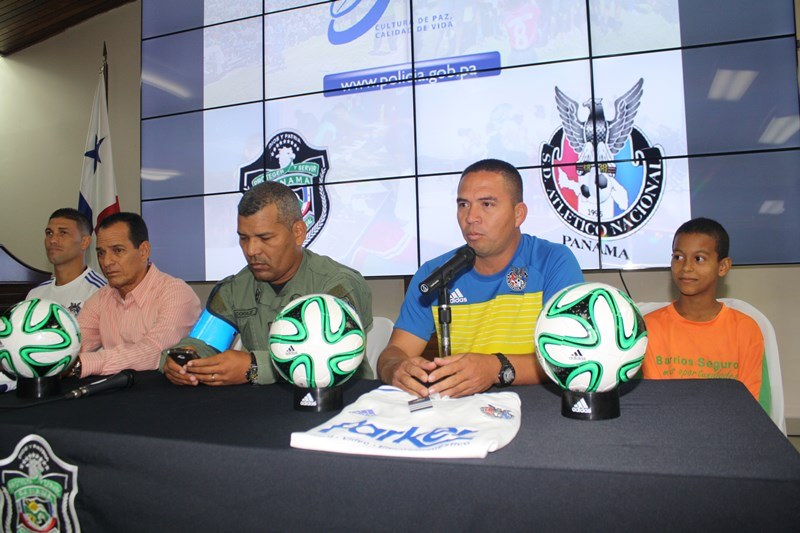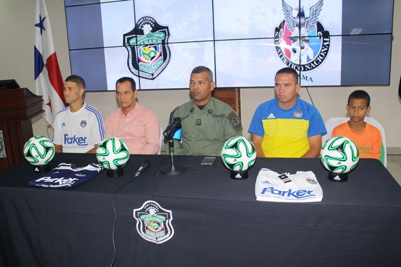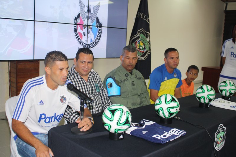 Una plantilla de lujo y con miras al título de campeón de la Liga Nacional de Ascenso “Torneo Clausura 2014-2015”, fue presentado el nuevo “team” de la Policía Nacional (PN). Esta temporada son muchos los cambios, uno de ellos, el nombre del equipo que se llamará denominado “Sociedad Deportiva Atlético Nacional”. Además contarán con 30 jugadores reconocidos de la talla de Alfredo Phillips, quien ha militado en diferentes equipos como el Chorrillo F.C., Deportivo Cali Colombia, Sporting, entre otros. Otra de las adquisiciones es Rubén Martínez, quien ha jugado para el Tauro F.C., Plaza Amador y Antony Basil, es otra de las fichas que se ha destacado en Río Abajo y en la Selección Nacional Mayor. Para Alberto Zapata, delantero del equipo de la PN, el ambiente es propicio para que ellos se puedan llevar el título. “Somos optimista y creo que también este año haremos una buena y exitosa temporada, como siempre y en cada juego nos aferramos a Dios. Y tenemos un cuerpo técnico de lujo”, aseguró Zapata. De acuerdo con el subcomisionado y del Grupo de Apoyo al Servicio de la PN, Gustavo Cogley, el objetivo es mantener a este equipo en el más alto nivel dentro y fuera de la cancha. “Para lograrlo trabajamos simultáneamente con el programa de Convivencia Pacífica, para que cada jugador sea inspiración de la juventud, sobre todo, de los niños. Gracias a esto hemos tenido la oportunidad de compartir con más de mil 200 niños y niñas de unas 14 comunidades de la urbe metropolitana entre, Viejo Veranillo Bruklincito, San Miguel, Curundú, Río Abajo, Villa Lucre, Nueva Libia, Felipillo, San Joaquín, El Martillo, Samaria, y Cocobolo”, resaltó Cogley. El encuentro se dio en la Sede de la Policía Nacional en Ancón.