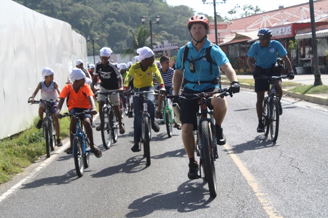 Llegó el fin de semana y la Policía Nacional a través de la Unidad Preventiva Comunitaria, realizó un recorrido ciclístico para los niños de los corregimientos de El Chorrillo y Curundú. Esta actividad se llevó a cabo en Amador con más de 80 niños, entre los 6 a 13 años, con la finalidad de aprovechar sus vacaciones al máximo, alejándolos del ocio, convivir pacíficamente y hacer de esta, una opción recreativa en beneficio a un estilo de vida saludable. Cabe resaltar que el Subteniente Jason Díaz, encargado de la jornada de ciclismo, tiene un grupo de 15 a 20 niños que practican este deporte todos los jueves en Amador. A su vez, resaltó la importancia de los lazos de amistad, entre los niños. La vuelta ciclística tuvo buena acogida por parte de los niños, puesto que afirmaban sentirse alegres con las constantes actividades que realiza la Policía Nacional para compartir con ellos. |