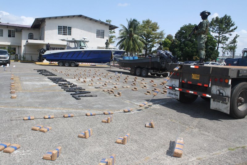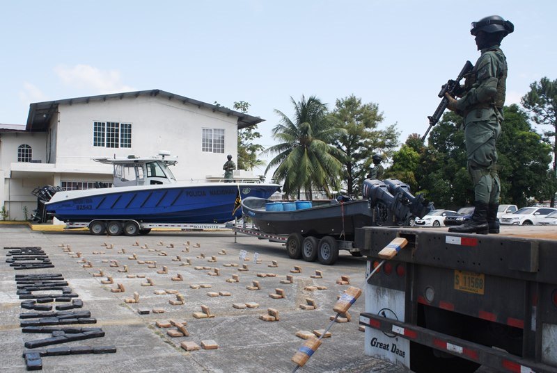 En menos de 72 horas, las acciones policiales preventivas de la Policía Nacional (PN), ha permitido propinarle cuatro certeros golpes al crimen organizado al decomisarles 416 paquetes de drogas. En la primera acción se incautó 50 paquetes en un hangar en el distrito de Arraiján. Allí se aprehendieron a dos personas, (un costarricense y colombiano). Ambos fueron sorprendidos cuando cargaban con cocaína la mesa de una mula. Unas horas después, pero en isla Galera en el Archipiélago de Las Perlas, efectivos de la PN en la operación “Estela 300”, interceptan una lancha rápida en la que iban tres colombianos, quienes al verse acorralados, tratan de darse a la fuga, pero son capturados. Al revisar la embarcación de 27 pies, se encuentran 295 paquetes de cocaína en 13 sacos. Además, llevaban 4 tanques de 55 galones con combustible, dos motores de 150 caballos de fuerza, una radio de base marina de largo alcance, un GPS y tres teléfonos celulares. En otra acción denominada “Shock”, desplegada en los predios del Parque Urracá, en la ciudad capital, un colombiano y un cubano, fueron capturados al encontrársele 55 paquetes de cocaína dentro del carro en que se movilizaban. Y en Vacamonte, en el distrito de Arraiján, a través de la operación “Francio 87”, se confiscan 16 paquetes de drogas dentro de una casa. Allí se aprehendieron a 4 personas (3 panameños y un colombiano). Todas estas acciones se realizaron en conjunto con Javier Caraballo, Fiscal Primero de Drogas y, Ida Mirones, Fiscal Segunda de Drogas. |