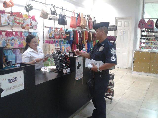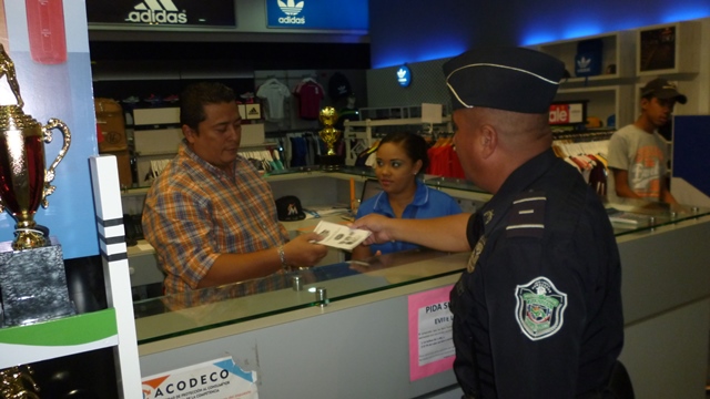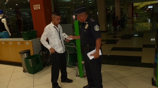 Unidades de la oficina de Seguridad Ciudadana de la Policía Nacional en Herrera, realizaron una jornada de volanteo para promocionar el Programa de Comercios Vigilantes en El Paseo Central del distrito de Chitré. En la actividad preventiva se entregaron más de 200 volantes a gerentes y empleados en diferentes comercios, quienes se mostraron interesados en integrarse a los programas preventivos de la Policía Nacional. La actividad fue aprovechada para informar a los comerciantes y clientes sobre las medidas de seguridad que se deben tomar en cada negocio e igualmente, se les habló sobre los beneficios del Programa Comercio Vigilante. |
