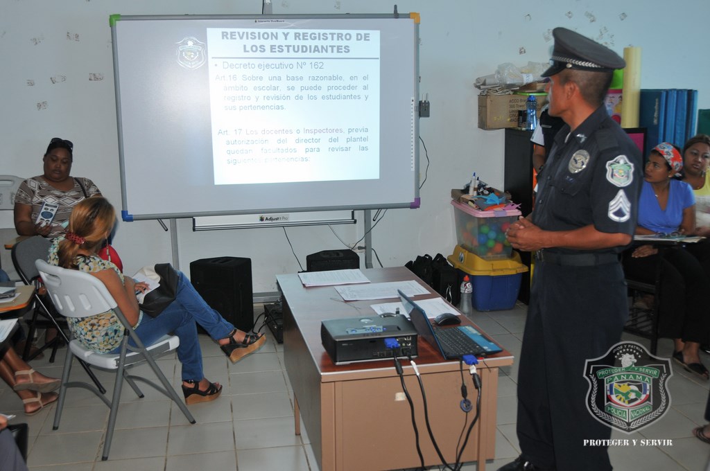 Desde muy temprano docentes de diferentes puntos del país recibieron una capacitación por parte de efectivos del Servicio de Niñez y Adolescencia de la Policía Nacional, sobre el procedimiento correcto de presentarse ante una situación de riesgo social que afecte a los estudiantes. Durante la charla los uniformados, les explicaron los pasos a seguir y las coordinaciones con la Policía Nacional, si un alumno es sorprendido con sustancias ilícitas, armas de fuego o arma blanca; igualmente si es víctima o se sospecha que sufre maltrato en el hogar, abuso sexual o acoso escolar. Esta jornada de capacitación simultánea que organiza la Policía Nacional aprovechando que aún no inicia la época escolar, busca brindarles a los educadores las herramientas para procurar la seguridad de los jóvenes y niños, además del personal docente y administrativo. De paso, se estrecha la colaboración y trabajo mancomunado entre policías y docentes, dijo la subcomisionada y jefa del Servicio de Niñez y Adolescencia, Cintia Meneses. Los educadores se mostraron complacidos con esta iniciativa, sobre todo aquellos que laboran en áreas donde los estudiantes son más vulnerables. Aide Jaén y Manuela Sevilla imparten clases en Tocumen, ambas con 12 años de experiencia en la docencia, consideran positiva esta capacitación, que les permite acercarse más a sus alumnos para guiarlos y ayudarlos ante situaciones que atenten contra su bienestar. La Policía Nacional, a través del Servicio de Niñez y Adolescencia continuará realizando estas capacitaciones en todos los planteles del país, convirtiéndose así en aliados de la educación panameña. Las charlas fueron dictadas por personal capacitado, en Arraiján, Panamá Oeste, Metro Este, Metro Oeste, Chiriquí, Veraguas, Colón, Herrera, Los Santos, Canalera, San Miguelito, Coclé y Bocas del Toro. |