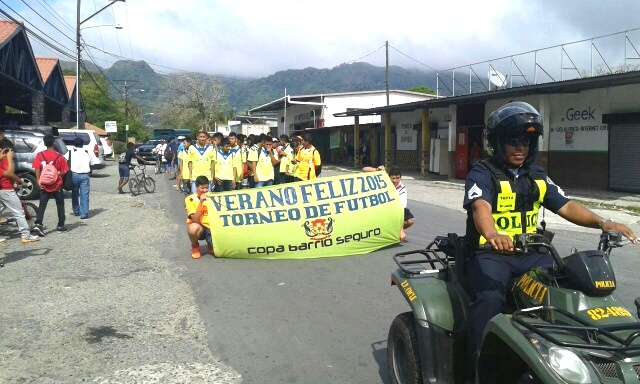 Este jueves inició en El Valle de Antón, la disputa de la Copa Barrios Seguros, organizada por el Puesto de Policía de El Valle con apoyo de organizaciones cívicas, líderes comunitarios y comercios vigilantes. Nueve equipos en los que participan 135 jóvenes de 13 a 17 años, de los nueve regimientos de El Valle, participan de esta actividad, que organiza la Policía Nacional, todos los veranos y con la que se pretende, que los jóvenes utilicen su tiempo libre, en actividades que les permitan desarrollar sus aptitudes y mantener buena armonía entre ellos, dentro y fuera de la competición. |