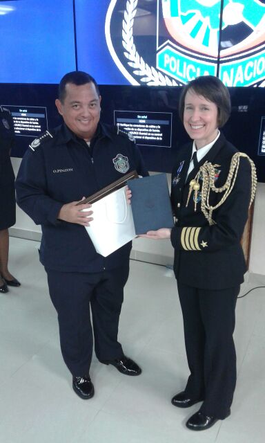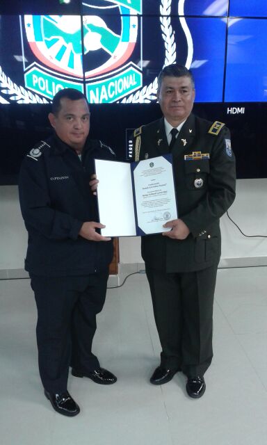 La sede de la Policía Nacional (PN) en Ancón, fue el escenario perfecto para que el director de esta entidad de seguridad, Omar Ariel Pinzón Marín, reconociera la trayectoria profesional de los agregados policiales en las embajadas de Ecuador y Estados Unidos acreditados en Panamá. A ellos se les entregó la medalla al servicio distinguido, por lo que el Director General, Omar Pinzón le agradeciera a los oficiales de ambos países por su respaldo a la PN y a los demás estamentos de seguridad para que procuran la seguridad en territorio panameño. Además destacó la excelente labor conjunta que han realizado en la región. En su intervención, el director Pinzón resaltó que la PN siempre estará a disposición de aquellas amistades y personas que llegan a nuestro país para compartir sus experiencias, emociones y liderazgo. “Considero oportuno condecorar a oficiales de la agregaduría de Ecuador, el Coronel Rodrigo Garcés; Mayor Olga Benavides, agregada adjunta, Sargento Primero, Eduardo Monteros, auxiliar administrativo; Subteniente y doctora Mónica Álvarez, pasante en los servicios médicos de la Dirección Nacional de Bienestar Policial y Familiar. En este acto, también fue condecorada la saliente Oficial Principal de Defensa de la Embajada de Estados Unidos en Panamá, Capitán de Navío Jacqueline Renée Finch, relevada en su cargo por el capitán de navío Carlos Guzman. La Capitán Finch, agradeció al director Omar Ariel Pinzón por la distinción otorgada e igualmente a la Policía Nacional por el calor famililar que le brindó durante el tiempo que ha estado en el territorio Nacional. Antes de culminar la ceremonia los agregados le entregaron al director Omar Pinzón unos presentes en señal de que siempre tendrán unos amigos en ellos. Durante la ceremonia se compartieron experiencias y anécdotas junto a agregados militares, navales, aéreos y policiales, en un almuerzo institucional. Los homenajeados e invitados disfrutaron de un grupo musical de jazz.
