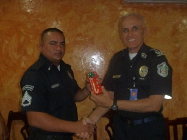 Un conversatorio con unidades de la Policía Nacional en la provincia de Los Santos, sostuvo el comisionado Franck Pinilla, Jefe de la 7ma Zona Policial. El Comisionado Franck Pinilla, Jefe de Zona motivó a todas las unidades a entregar lo mejor de sí en su tiempo de servicio y que se integren con la comunidad, a quienes se deben en todo momento. El conversatorio tuvo como finalidad intercambiar conversaciones y compartir un momento de compañerismo entre los uniformados, finalizando con un sorteo de obsequios y un suculento almuerzo. |