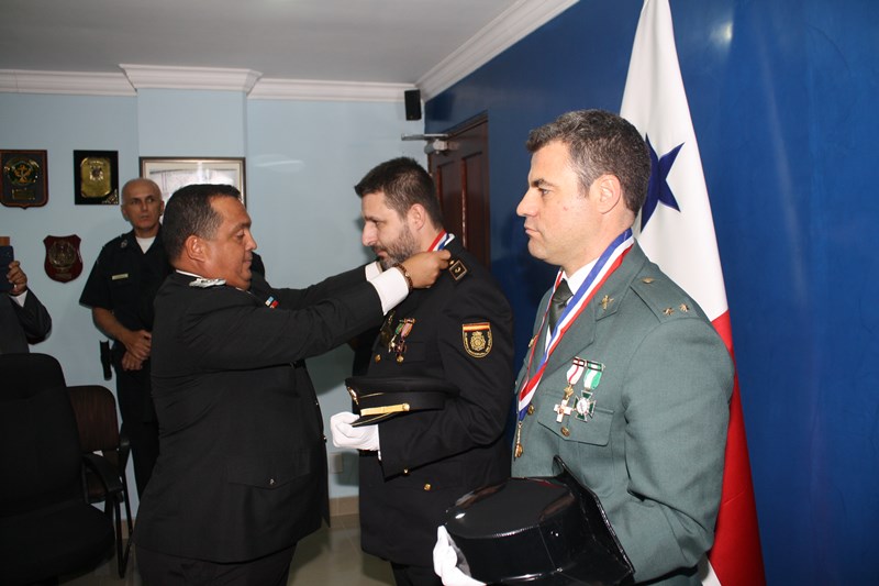 El Director de la Policía Nacional de Panamá, Omar Ariel Pinzón Marín, otorgó medalla de Honor al Mérito al Teniente Indalecio Antonio Becerril Acedo, oficial de la Guardia Civil y al Subinspector José Fernando Grima Mozo, Oficial del Cuerpo Nacional de Policía de España. La citada distinción les fue otorgada como reconocimiento, homenaje en la implementación y ejecución de una plataforma de inteligencia a nivel nacional, para ayudar al Estado panameño en la lucha contra el terrorismo y el crimen organizado. Ambas condecoraciones fueron conferidas en uso de las facultades legales y reglamentarias que le otorga al Director de la Policía Nacional, el Artículo 318 de la Ley 18 del 3 de junio de 1997, el artículo 304 del Decreto Ejecutivo 172 del 29 de julio de 1999. |