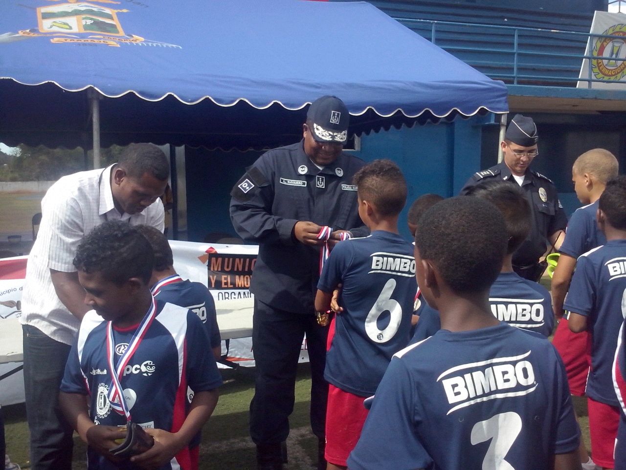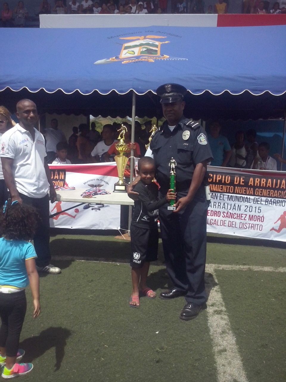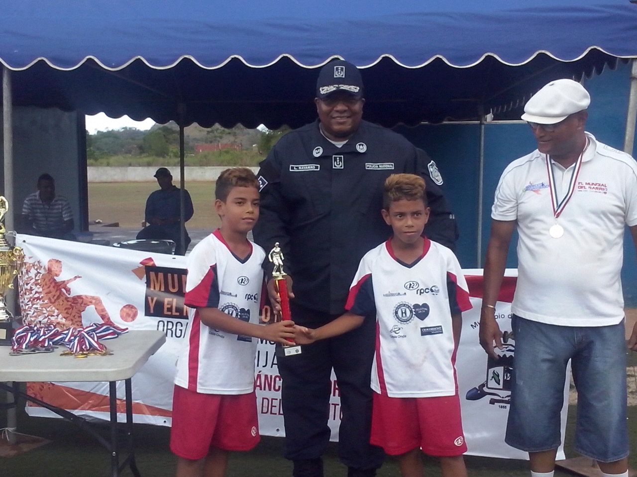 Por 34 días, más de 400 niños del distrito de Arraiján disfrutaron de participar en el "Mundial del Barrio 2015", en el que 24 equipos divididos en tres categorías, se disputaron el galardón. La Policía de Niñez y Adolescencia durante las cuatro semanas apoyaron el desarrollo de este mundial, con charlas que recibieron los niños, niñas y adolescentes sobre el uso de drogas, las pandillas y el acoso, además de brindarle la seguridad a los participantes. Estas charlas contribuyeron a preparar a los niños y a la juventud para hacer frente a los retos futuros y adoptar posiciones de liderazgo en sus comunidades. La ceremonia de clausura se efectuó en el Complejo Deportivo El Mistic, donde el Comisionado Luis Navarro hizo entrega del trofeo al equipo de Chorrillitos de la categoría Sub 11 al vencer en penales a la escuela de Chepo, quienes representaban a Nuevo Chorrillo 3 goles a 0. |