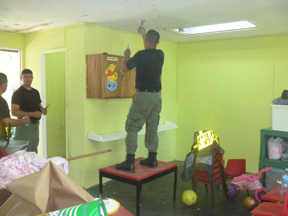 Unidades administrativas y del personal de infraestructuras de la 1º Zona Policial de Bocas del Toro, realizaron una labor social en las instalaciones del Coif de Changuinola. La acción inició desde tempranas horas de la mañana del pasado viernes 20 de febrero, en la que se limpió y pintó paredes e instalaciones del lugar. Las paredes internas y externas de los salones de clases presentaban serios problemas de deterioro, por lo que se logró la adquisición de pinturas y materiales para pintar todos los salones de la escuela. Al finalizar, se pudo disfrutar de un brindis ofrecido por algunos padres de familia y amigos del centro. |