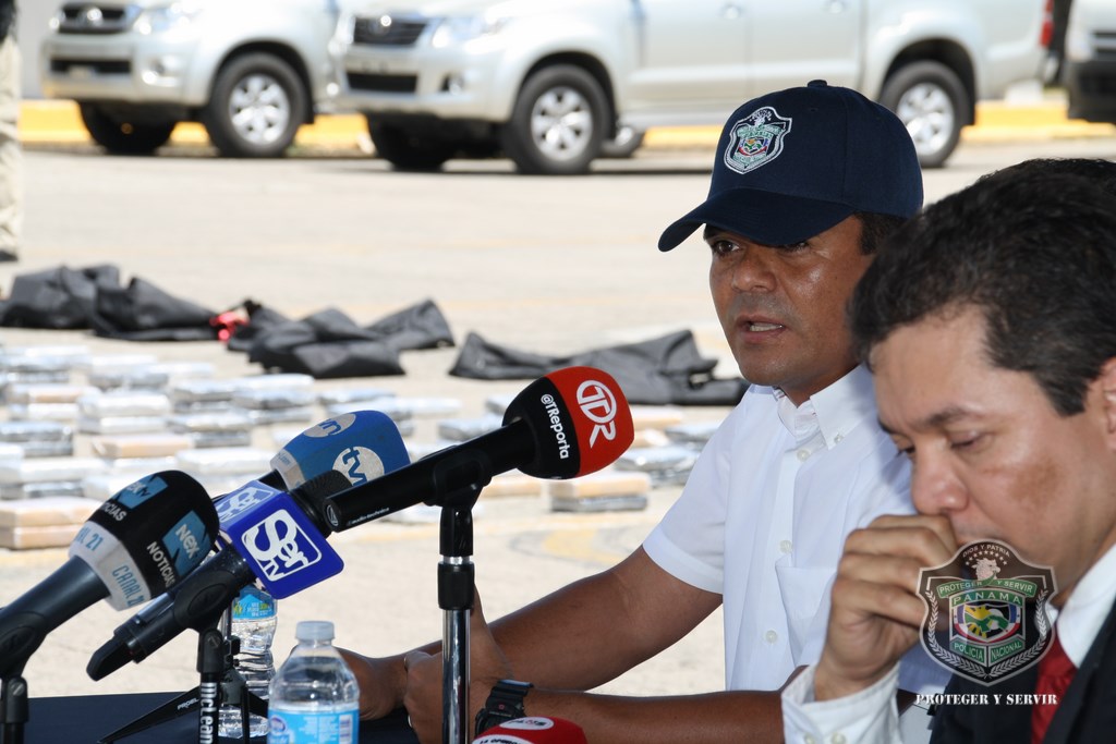 Más de 70 millones de dólares en sustancias ilícitas que tenían como destino a Europa se logró decomisar mediante la Operación “Soga”, tras la desmantelación de una red criminal conformada por empleados de los puertos que laboraban en diferentes funciones, desde capataz, operadores de grúas, entre otros oficios. Recientemente unos 600 paquetes de supuesta cocaína y dos sellos falsos de seguridad fueron incautados por la Policía Nacional en conjunto con la Fiscalía Primera de Drogas durante un allanamiento a uno de los puertos en la provincia de Colón. La sustancia ilícita fue encontrada en 15 maletines, que se mantenían en uno de los contenedores de una embarcación procedente de Canadá con destino a Bélgica. Se presume que este contenedor que transportaba pistachos fue contaminado por trabajadores del puerto, entre ellos los cinco que fueron aprehendidos a inicios de la operación “SOGA”. Esta operación que se ha desarrollado en tres fases en los puertos de la ciudad capital y Colón, ha logrado hasta la fecha el decomiso de 991 paquetes de cocaína. También la incautación de un vehículo y 9 sellos de seguridad falsos para contenedores. En la conferencia de prensa donde se brindaron detalles sobre esta operación estuvieron presentes el Comisionado y Subdirector Operativo de la PN, Javier Castillo; comisionado David Ramos, subdirector Penitenciario, el subcomisionado John Dornheim, jefe de la Dirección Nacional Antidrogas y el fiscal encargado de Drogas, Edwin Juárez. De acuerdo con el Comisionado Castillo, este decomiso forma parte de las acciones preventivas que vienen realizando la primera institución de seguridad en todo el país. La droga fue puesta a órdenes de las autoridades judiciales. |