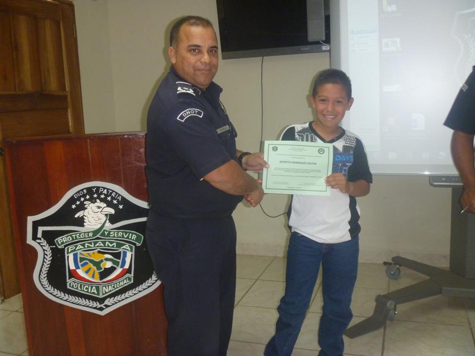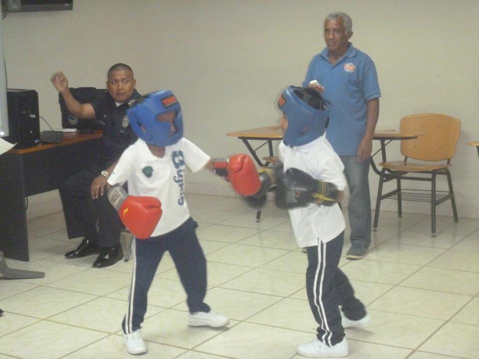 La Oficina de Seguridad Ciudadana de la 1º Zona Policial de Bocas del Toro, realizó una significativa ceremonia de despedida del programa "Verano Feliz 2015", en la que participaron más de 40 niños y niñas. Estos pequeños recibieron entrenamientos básicos de karate, boxeo y bailes típicos, donde se les ayudó a desarrollar sus habilidades artísticas y deportivas. La actividad inició con las palabras del Comisionado Edwin Ostia, en representación del Comisionado Aristides Hassán, jefe de la zona policial. Ostia felicitó a los jóvenes por culminar con éxito todas las enseñanzas aprendidas por parte de sus instructores. En la ceremonia los chicos bailaron el Punto, realizaron dos combates de boxeo olímpico y de karate, en demostración de lo aprendido. Al final todos recibieron sus certificados de participación y disfrutaron de un brindis. |