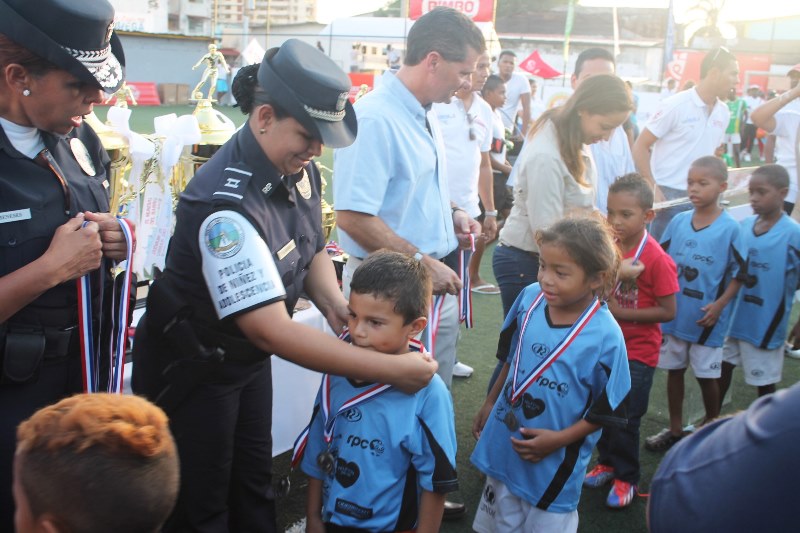 Con la premiación a los niños y niñas destacados en las diferentes categorías que contempló el mundial del Barrio, la Policía Nacional, celebró junto al equipo de la sub-13 de la Unidad Preventiva Comunitaria (UPC) de El Chorrillo, el tercer lugar obtenido en este evento deportivo. La Policía de la Niñez y Adolescencia, en conjunto con la UPC, brindó para este evento todo su apoyo a los niños que conformaron este equipo y que en la Plaza Amador demostraron todo su talento futbolístico que disfrutaron en sana convivencia. La subcomisionada y jefa de la Policía de la Niñez y Adolescencia, Cinthya Meneses estuvo presente en esta premiación y compartió un momento agradable con los niños y con palabras muy sutiles y acorde a las edades. "Los felicito y exhorto a seguir adelante, a respetar a los padres y a estudiar bastante", resaltó Meneses. Enfocados en brindar orientación y apoyar a la niñez y adolescencia panameña, la Policía Nacional seguirá trabajando unificando estrategias en cuanto a prevención y buenas prácticas para el beneficio de un ambiente más seguro lleno de oportunidades para todos.