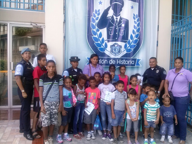 Un grupo de 27 niños, provenientes de humildes familias del histórico barrio de Santa Ana, visitaron el Salón de Historia de la Policía Nacional de Panamá. Los niños fueron instruidos por miembros de la Policía Nacional que administran el salón, ubicado al lado de la estación de Policía Nacional en San Felipe, el cual abrió sus puertas el lunes 10 de febrero del año 2013. Conocieron el memorial para los miembros fallecidos e igualmente vieron videos alusivos a la entidad policial, también una réplica de los diferentes uniformes que ha utilizado la Policía Nacional, así como entrevistas de reconocidas autoridades, entre otros. En este salón "pequeño pero acogedor", panameños y extranjeros tienen la oportunidad de informarse sobre las acciones que realiza la Policía Nacional de Panamá. |