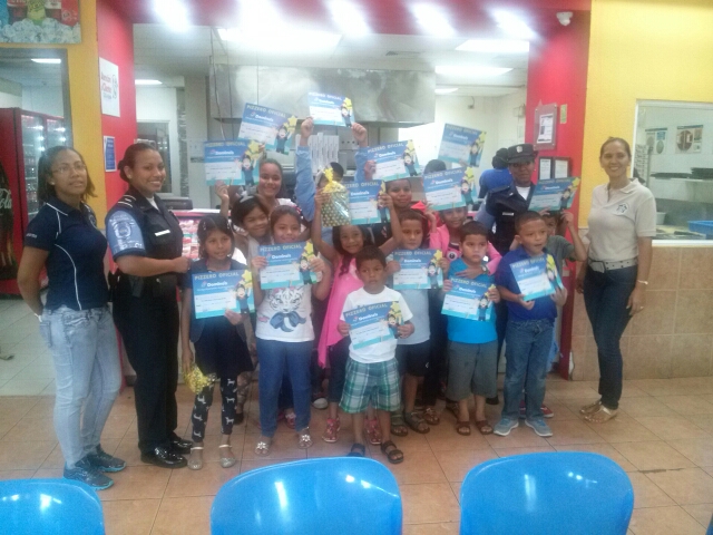 Aprovechando el verano, se organizó una actividad de despedida de vacaciones para los hijos de las unidades policiales de la Unidad Preventiva Comunitaria de Curundú y El Chorrillo. En la mencionada actividad se llevaron a 16 niños y niñas a un desayuno, el cual ellos mismos prepararon. Se trató de unas ricas pizzas y además aprendieron el funcionamiento de la sucursal de Bella Vista de la Pizzeria Domino´s . Posteriormente, los niños acompañados de las unidades policiales, tuvieron el placer de disfrutar de una gira y visita al acuario de Amador, donde observaron las maravillas de la naturaleza para culminar una hermosa tarde en la piscina. |