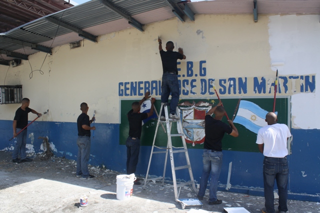 Diferentes centros educativos ubicados en el distrito de San Miguelito, fueron beneficiados con jornadas de limpiezas y reparación de bienes, por parte de las unidades de la 2da Región Policial en conjunto con más de 100 reclutas del Instituto Superior Policial Belisario Porras (ISPOL). Dichas unidades culminaron labores como reparación de sillas, pintura, corte de grama y limpieza en general en Escuelas como Estado de Israel, Escuela Primaria en Cerro Batea, Primer Ciclo Louis Martinz, José de San Martín, Jerónimo de la Ossa y Rogelio Sinán.Todo esto con el propósito de que los estudiantes inicien este 2 de marzo un nuevo año lectivo con las instalaciones adecuadas para lograr un mejor desempeño. Las jornadas de limpieza son parte de la labor comunitaria de la institución las cuales ayudan a fortalecer los lazos entre la policía y la comunidad, señalo el Comisionado Alonso Vega Pino, Jefe de la 2da Región Policial. |
