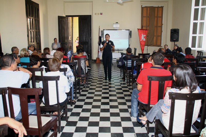 Unos 82 docentes del Instituto Nacional fueron capacitados por la Policía Nacional mediante el Servicio de Policía de Niñez y Adolescencia sobre los procedimientos adecuados para atender situaciones que ponen en riesgo el bienestar físico y emocional de los estudiantes. El bullying, la presión de grupo, el consumo de drogas o alcohol, el uso de las redes sociales, la violencia intrafamiliar y el acoso sexual, entre otros temas fueron expuestos en la dinámica charla, donde los educadores pudieron plantear sus inquietudes siendo atendidas por este grupo especializado de policías. También se les orientó sobre las coordinaciones que deben realizarse con la Policía Nacional cuando un estudiante es sorprendido con sustancias ilícitas o armas de fuego o punzocortantes. Algunos de los participantes hablaron de sus experiencias con adolescentes en riesgo social, considerando oportuna esta iniciativa de la Policía Nacional debido a que les proporciona herramientas fundamentales en la atención y manejo de los casos. Igualmente, los uniformados les entregaron a los docentes, trípticos que contienen varias recomendaciones útiles para procurar un mejor trato con el alumnado. La subcomisionada y jefa del Servicio de Policía de Niñez y Adolescencia, Cintia Meneses dijo que estas capacitaciones son reflejo del acercamiento y trabajo conjunto de la Policía Nacional con los docentes, personal administrativo de los planteles y autoridades educativas, con la finalidad de garantizar la seguridad de los estudiantes y procurarles un ambiente tranquilo. “Este aporte a la educación es parte de nuestra misión de fomentar y robustecer los valores, como clave en el desarrollo integral de los niños y jóvenes que son el futuro de nuestro país”, destacó la subcomisionada Meneses. El Servicio de Policía de Niñez y Adolescencia mantiene estas dinámicas a los largo de todo el año escolar para reforzar la labor mancomunada con el sector educativo. Así mismo, organiza y desarrolla diversas actividades culturales, educativas y deportivas dirigidas a brindar espacios de sana convivencia para las comunidades.