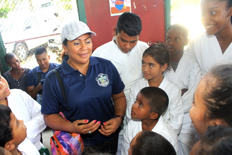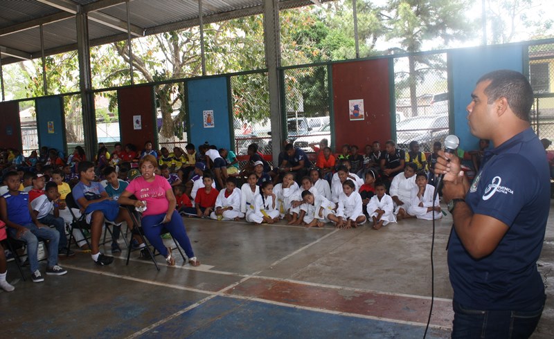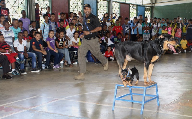 Con diversas actividades culturales y deportivas fue clausurado el “Verano Feliz 2015” como parte del programa de Convivencia Pacífica que lleva adelante la Policía Nacional conjuntamente con la Universidad Panamá. Niños y niñas de varias comunidades de la urbe capital y del distrito de San Miguelito, fueron los protagonistas de este evento que se realizó en el complejo deportivo de la comunidad de Paraíso en el área canalera, donde demostraron lo aprendido durante los cursos y actividades desarrolladas durante las vacaciones de verano. En la actividad la escuadra de la Unidad Canina de la Policía Nacional arrancó los aplausos de los niños, jóvenes y adultos que observaron con admiración las destrezas de los canes junto a sus entrenadores. Mientras que la Orquesta de la Policía imprimió las notas musicales deleitando a todos los asistentes. Exhibiciones de karate, bailes folclóricos, encuentros deportivos de fútbol, baloncesto, béisbol y competencias de natación fueron las actividades que despidieron con mucha alegría y diversión este “Verano Feliz” que promete repetirse el próximo año. |