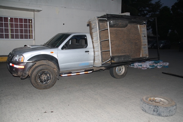 ENCUENTRAN 107 PAQUETES DE COCAÍNA EN DOBLE FONDO DE PICK UP