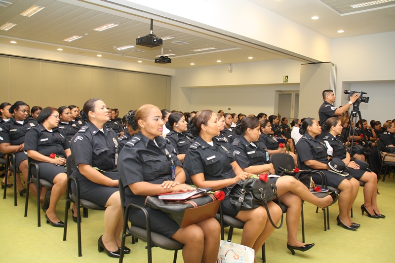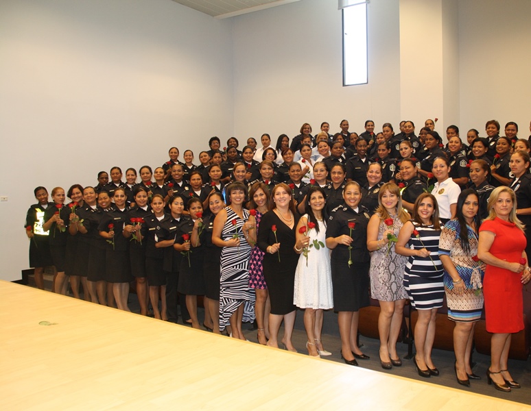 Las Damas A.S.U.L (Actitud, Solidaridad, Unidad, Lealtad), grupo conformado por esposas de oficiales y 150 unidades femeninas de la Policía Nacional, participaron de una conferencia denominada “SPA EMOCIONAL” conmemorando el Día Internacional de la Mujer. El evento desarrollado en el salón de reuniones del Parlamento Centroamericano, contó con la participación de Nacelys de Pinzón, presidenta de las Damas A.S.U.L., Comisionada Oris Jaén, secretaria general de la Policía Nacional, además de disertación del conferencista internacional y psicóloga Amalia Romero. El SPA EMOCIONAL consistió en presentarles a cada mujer herramientas y terapias alternativas para generar en ellas bienestar integral, liberándolas de enfermedades emocionales causadas por la actividad diaria, situaciones familiares y laborales. La presidenta de las Damas A.S.U.L, Nacelys de Pinzón, felicitó a todas las damas miembros de esta institución en el día Internacional de la Mujer, celebrado el próximo 8 de Marzo. Cada una de las femeninas presentes detenidamente escucharon los consejos proporcionados por la experta en desarrollo humano, además recibieron como regalo una rosa roja. Cada día son más las mujeres que deciden integrarse a las filas de la Policía Nacional de Panamá, rompiendo esquemas y contribuyendo a la seguridad colectiva del País |