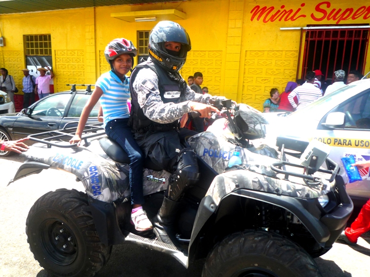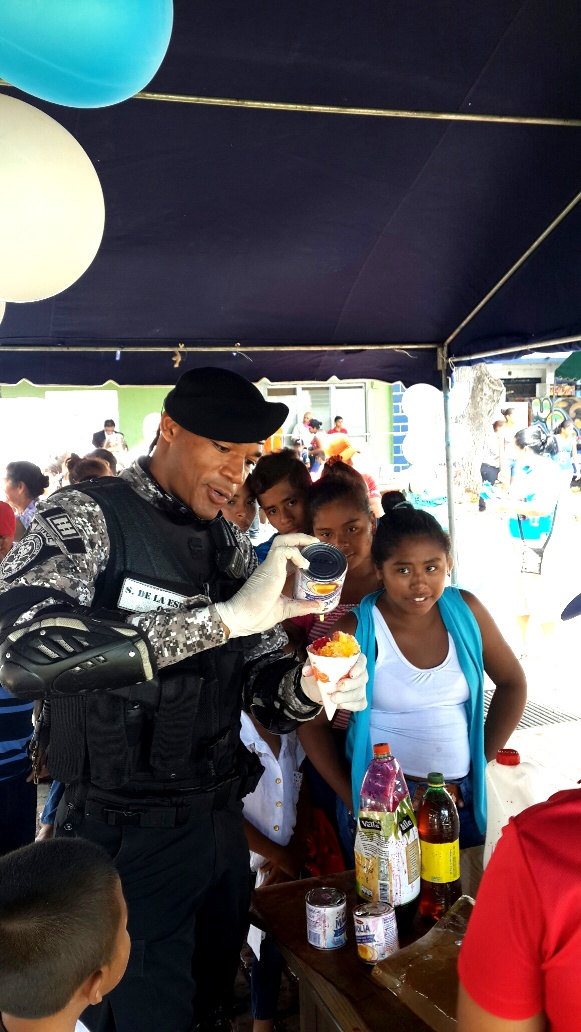 Unidades de la Segunda Zona Policial, comandados por su Jefa de Zona, Comisionada Ibeth González de Rivas se tomaron la ciudad de Natá, no sólo para brindar seguridad sino para participar junto a la comunidad de las actividades religiosas, culturales, sociales y de caridad. Un equipo de unidades policiales pasearon a los niños y niñas en four wheel, instalaron una barbería móvil para hacer cortes de cabello, dos equipos más se dedicaban a hacer raspados y repartirlos entre los asistentes, mientras que la sección de reclutamiento y seguridad ciudadana se encargaba de entregar afiches y documentación, relacionada cada uno, a sus programas. Fue una jornada extensa, agotadora, dura, pero de grandes satisfacciones al poder observar en los niños y niñas que visitaban el local de la Policía Nacional, aflorar en sus ojos miradas de satisfacción y alegría. La Policía Nacional de Penonomé, el domingo pasado también pasó un día inolvidable, cuando llegó con sus programas sociales a las Aldeas Infantiles S.O.S, para compartir con ellos y llevarles un rato de alegría, juegos y orientación. Ahora se preparan, para el domingo 15 de marzo, “Día de las buenas acciones”, para limpiar algunos parques de la provincia, que requieran de este apoyo, para que estén presentables y puedan los niños y niñas, utilizarlos con seguridad. |
