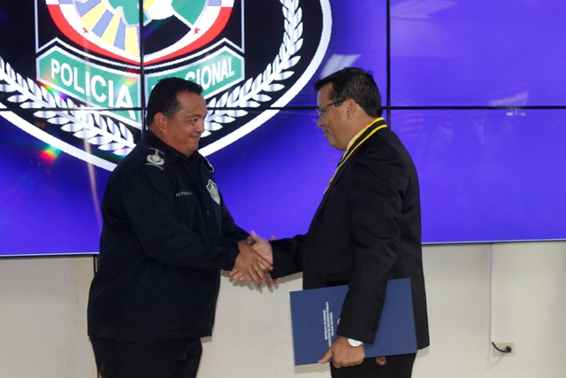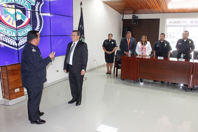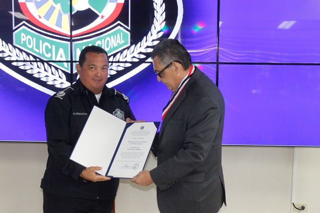 "Usted fue un digno ejemplo de humildad y le dio el realce que se merecían a los miles de hombres y mujeres que integran la Policía Nacional" así se manifestó el director General de la Policía Nacional Omar Ariel Pinzón Marín de quien por cinco años fungió como jefe de esta institución de seguridad, Carlos Barés Weeden. Este lunes 9 de marzo en un significativo y emotivo acto realizado en el salón de conferencias de la Policía Nacional, fue condecorado de manera honorifica, al ex Director de la Policía Nacional (1999-2004). A Barés Weeden se le entregó la medalla de la Dirección General de la Policía Nacional, por su profesionalismo y dedicación. También fue condecorado, el comisionado retirado, Luis Alberto González, jefe de la Dirección de Investigación Policial en el año 2000-2002. Ambos agasajados, recibieron además pergaminos de condecoración y algunos recuerdos. El Director de la Policía Nacional, Omar Pinzón dijo que las puertas de la institución siempre estarán abiertas, para aquellos hombres y mujeres, jubilados o retirados que sacrificaron tiempo con su familia para servir a la sociedad, brindándole seguridad. El ex director policial Carlos Barés Weeden, agradeció al Director General Omar Pinzón, por reconocer a través de esta condecoración, su lucha y sacrificio para el bienestar de este estamento de seguridad, a la vez q exhortó a los uniformados a caminar con la frente en alto siempre pese a las críticas diarias a las que se enfrentan. En tanto, el Comisionado retirado Luis Alberto González, recomendó a los uniformados echar siempre hacia delante, fortalecer el espíritu de cuerpo que los llevará a mantener elevado el buen nombre de esta institución. |