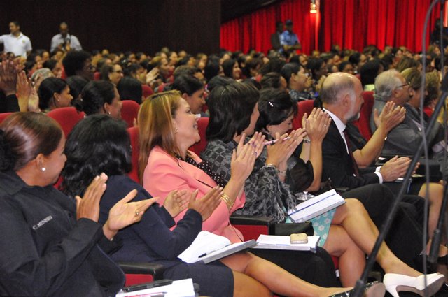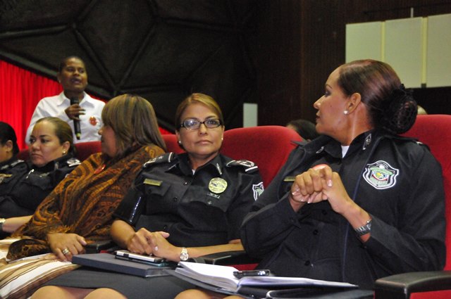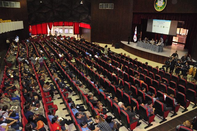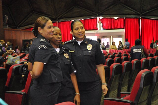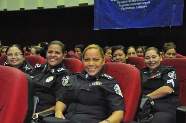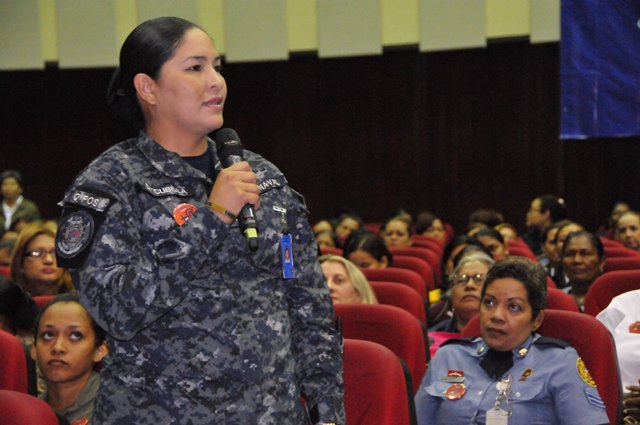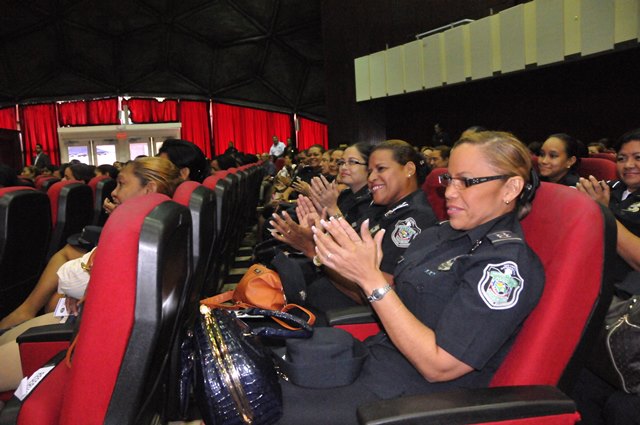Con la asistencia de más de 500 damas de los diferentes estamentos de seguridad, instituciones gubernamentales, facilitadoras judiciales, artistas y profesionales representativas de la sociedad se realizó el encuentro “Mujer y Seguridad Ciudadana: la prevención, una tarea de todas y todos”, organizado por la Policía Nacional y la Organización de los Estados Americanos. Celebrando el Día Internacional de la Mujer se realizó este evento en el Domo del Campus Universitario Harmodio Arias Madrid de la Universidad de Panamá en Altos de Curundu, donde los participantes intercambiaron ideas y experiencias sobre el rol de la mujer en la comunidad y sus aportes en la prevención para fortalecer la seguridad ciudadana. Los presentes tuvieron la oportunidad de escuchar a la doctora Rosa María Britton, manifestó la importancia de redescubrirse y crecer como personas, darse nuevas oportunidades, a no rendirse, a seguir aprendiendo y aplicar esos conocimientos con propósitos positivos. Representando al Directorio de la Policía Nacional, estuvo la comisionada Oris Jaén, Secretaria General, quien exaltó el valor de las mujeres, quienes con sacrificio se desempeñan en varias facetas, sin descuidar su papel de madre, educando a sus hijos con valores; importante pilar para construir una sociedad sana. También algunas de las damas, hablaron de sus vivencias; siendo sus testimonios ejemplos de superación, lucha y amor por su trabajo. La actividad contó además con la presencia de autoridades del Ministerio de Seguridad Pública, la Defensoría del Pueblo, entidades gubernamentales, organismos no gubernamentales y miembros del cuerpo diplomático, entre otros invitados.