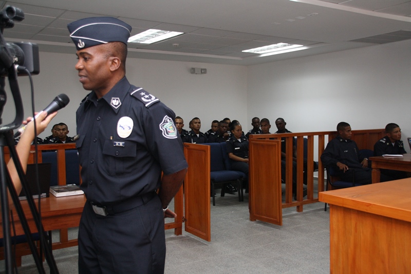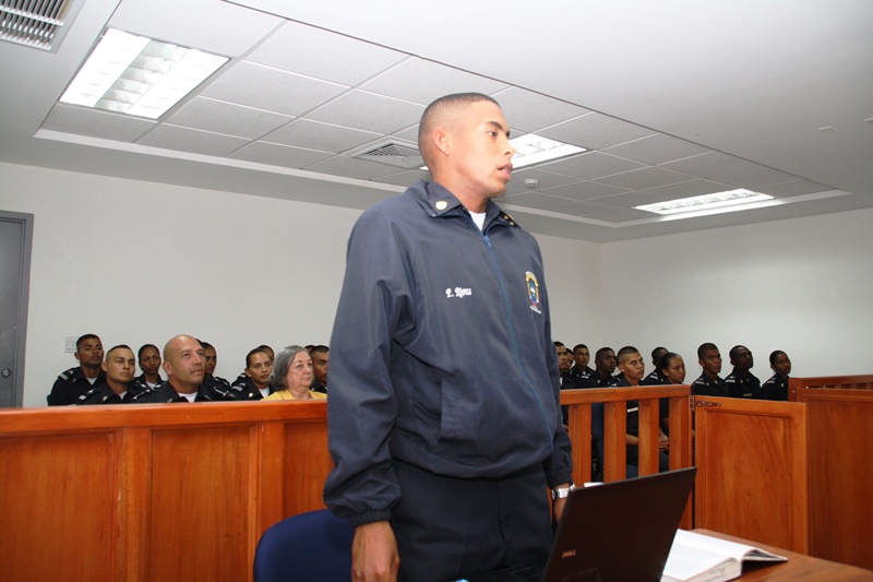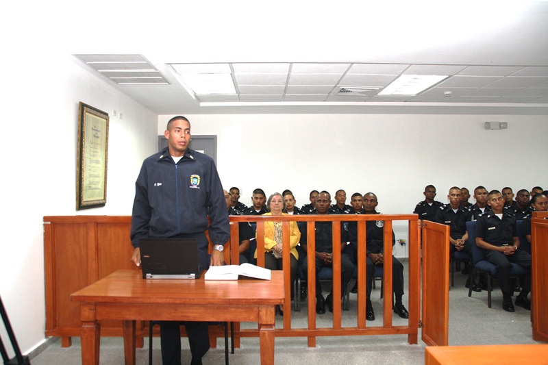 Con la escenificación de una sencilla audiencia, cadetes de la Escuela de Oficiales de Policía Doctor Justo Arosemena, utilizaron por primera vez la recién inaugurada Sala de Audiencia, que tendrá como objetivo complementar su formación académica. Esta sala de audiencia que alberga este centro de estudios, permitirá a los estudiantes aplicar los conocimientos teóricos obtenidos a través de la asignatura de Derecho Penal en la licenciatura de Administración Policial. Yolanda Pulice, asesora académica de la Dirección Nacional de Docencia de la Policía Nacional, dijo que con esto la entidad policial busca que los futuros oficiales conozcan los procesos penales, participando y llevando a la práctica la preparación de juicio, la presentación de pruebas, hasta la etapa de las sentencias. "Esta nueva herramienta los prepara para analizar los pasos del Sistema Penal Acusatorio y los métodos de conflictos", agregó Pulice. En tanto, el subcomisionado y director de la Escuela de Oficiales Doctor Justo Arosemena, Simón Henríquez explicó que con esta formación las unidades saldrán más capacitados para el desempeño de sus funciones técnicas, investigativas y operativas, respetuoso de los procedimientos en apego a la ley, velando por los derechos y garantías de los ciudadanos. La creación de esta Sala de Audiencia, entre otros proyectos que lleva adelante la Policía Nacional, forma parte de la modernización en el proceso de enseñanza que busca la excelencia académica y virtudes de los jóvenes que ingresan a las filas de la primera institución de seguridad, siendo además un compromiso con la sociedad panameña.