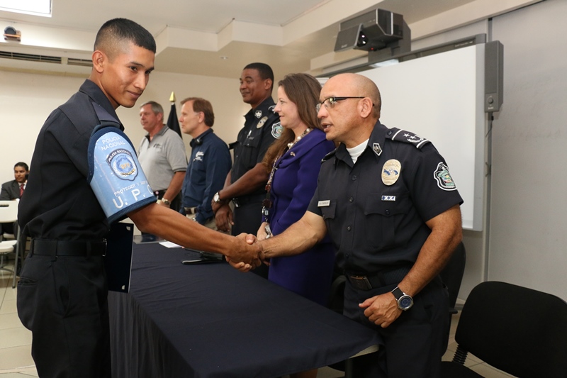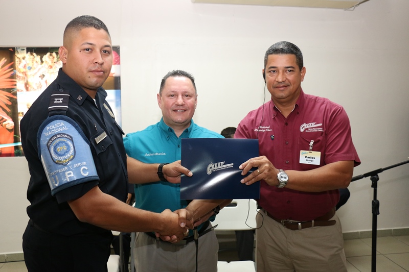 Este miércoles 18 de marzo, culminó la capacitación de 39 unidades de la Policía Nacional en el programa G.R.E.A.T, (resistencia a las pandillas) dictado por expertos en este programa preventivo que inició por primera vez en los Estados Unidos expandiéndose hasta Centroamérica. La clausura tuvo lugar en el auditorio A2, del Instituto Superior Policial (ISPOL), donde participaron: el comisionado Oswaldo Morales director del ISPOL; Doyle Ron, administrador regional del programa GRATE en los Estados Unidos y Centroamérica; invitados de la embajada de los Estados Unidos en Panamá e instructores de diversos países. Los uniformados recibieron el certificado de capacitación del curso de prevención, cuya duracion fue de dos semanas, resaltando que es el primer grupo policial en adquirir estos conocimientos y entrenamientos en nuestro país. Para el administrador regional del programa G.R.A.E.T, Doyle Ron, Panamá de ahora en adelante contará con un equipo preparado que brindará educación preventiva en las escuelas a los grupos más vulnerables, como lo son los niños y niñas, fortaleciendo sus valores y resistencia a las pandillas y grupos delictivos. A su vez, Ron agradeció la hospitalidad y generosidad brindada por la Policía Nacional en el desarrollo de tan maravilloso programa como lo es G.R.E.A.T. e instó a seguir honrando su lema “proteger y servir” que es muy humanitario. De ahora en adelante estos uniformados de la Unidad Preventiva Comunitaria y Niñez y Adolescencia, capacitados con herramientas necesarias para dar charlas a alumnos de escuelas a nivel nacional, deberán poner en práctica lo aprendido, facilitando a los menores en riego, métodos para evitar ser víctimas de la delincuencia. |
