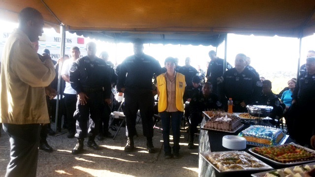 La 2da. Región Policial en San Miguelito realizaron una caminata por la Paz; iniciando desde el cuartel policial de Santa Marta, al son de unas ¨Dianas¨. Los agentes, oficiales y miembros no juramentados de esta Región Policial caminaron hasta la Loma del Cristo, ubicada en calle “P” Paraíso. Al llegar se realizó un acto que incluía una misa, posteriormente se le cantó el cumpleaños al Comisionado José Ríos, Director Nacional de Operaciones. Todos participaron de un brindis y finalmente se llevó a cabo una jornada de limpieza en las inmediaciones del Cristo Redentor. |
