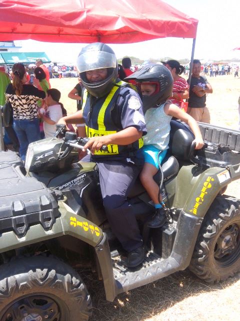 Unidades de la Policía Nacional, de servicio en la provincia de Herrera, participaron en diferentes actividades en un evento celebrado en el Aeropuerto Capitán Alonzo Valderrama, ubicado en el Distrito de Chitré. La Unidades policiales realizaron presentaciones Canina a través del Grupo Juvenil Canino de la Zona, al igual que paseo a niños en four wheells y volanteo por unidades de Seguridad Ciudadana, Niñez y Adolescencia y Reclutamiento. Esta actividad, se llevó a cabo con la finalidad de la convivencia pacifica y el acercamiento de la Policía Nacional con la ciudadanía. |