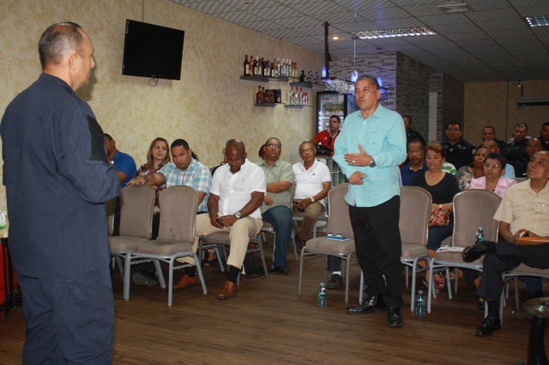 El programa de la Policía Nacional "Vecinos Vigilantes" continúa realizando actividades de fortalecimiento, esta vez un aproximado de 40 residentes de diferentes sectores del distrito de San Miguelito, se reunieron con el jefe de Segunda Región, Alonso Vega Pino para coordinar la seguridad en estas áreas. El jefe de la región, dijo que el programa tiene como fin acercarse, crear confianza entre los integrantes del grupo y las unidades policiales. "Tenemos el propósito de que los residentes en San Miguelito, denuncien cualquier delito que se esté dando y resolver de manera inmediata" destacó. En tanto, el comisionado Roberto Castillo encargado de la subestación policial de Brisas del Golf, realizó una rendición de cuenta para que los dirigentes estuvieran informado de las acciones policiales que se llevan a cabo en su entorno. |
