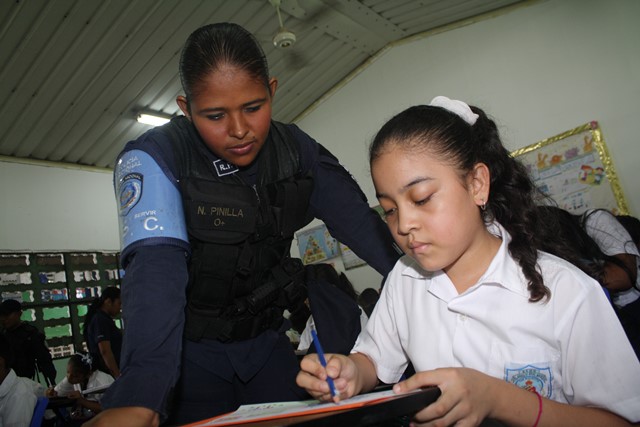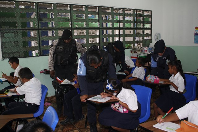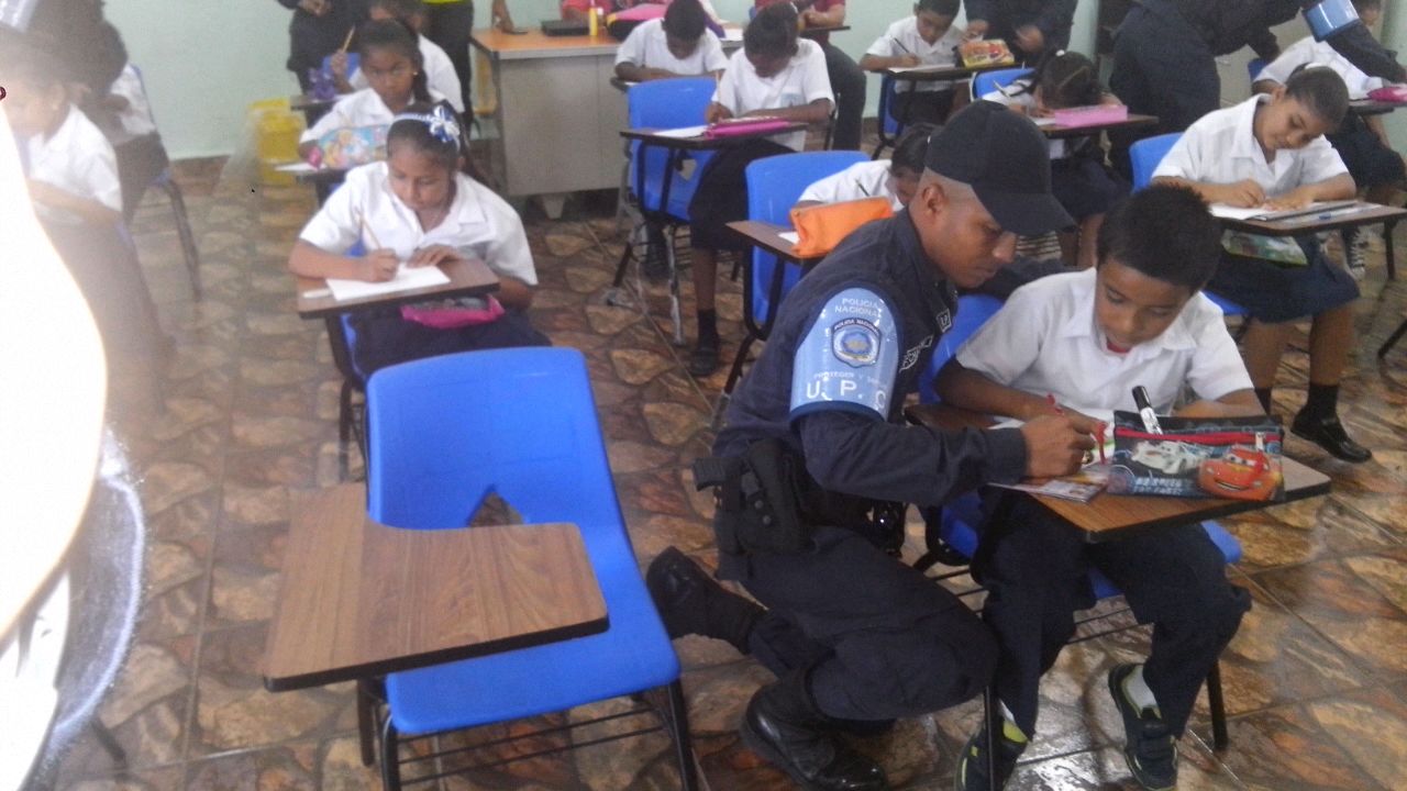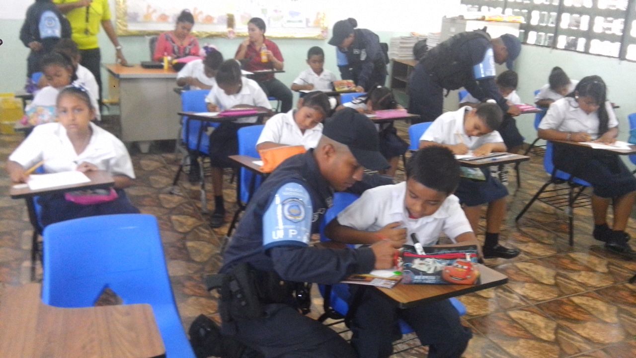 La Policía Nacional a través de la Unidad Preventiva Comunitaria (UPC) de Samaria, inició el proyecto “Dibuja el Policía en tu Escuela” en la escuela Arnulfo Arias del distrito de San Miguelito. Este concurso que está dividido en tres categorías, busca que los niños y jóvenes, plasmen en su dibujo, las acciones positivas que tiene el policía. A su vez, invita a otros menores a que participen de esta actividad para crear un acercamiento comunitario con los niños, profesores y familiares. El lunes finalizarán este concurso con la entrega de los premios a los tres primeros lugares. El jefe de la Segunda Región, Alonso Vega Pino se mostró feliz al observar en los dibujos de estos pequeños al Policía como un amigo y ejemplo a seguir. En tanto, el encargado de la UPC de Samaria, subcomisionado Raymundo Barroso dijo que se pretende llevar este proyecto a otras escuelas, en busca de un acercamiento con la comunidad. Igualmente, acercarnos a los niños y sus familiares para alejarlos de las malas compañías y por de las delincuencia. |