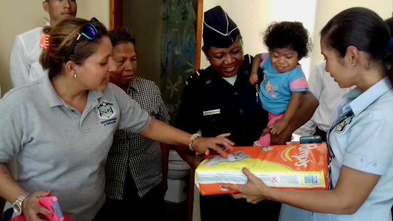 POLICÍAS EN COCLÉ LLEVAN CANASTA DE VIVERES A FAMILIA HUMILDE