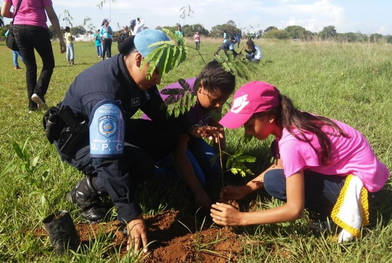 POLICÍA Y ESTUDIANTES SIEMBRAN ÁRBOLES MADERABLES