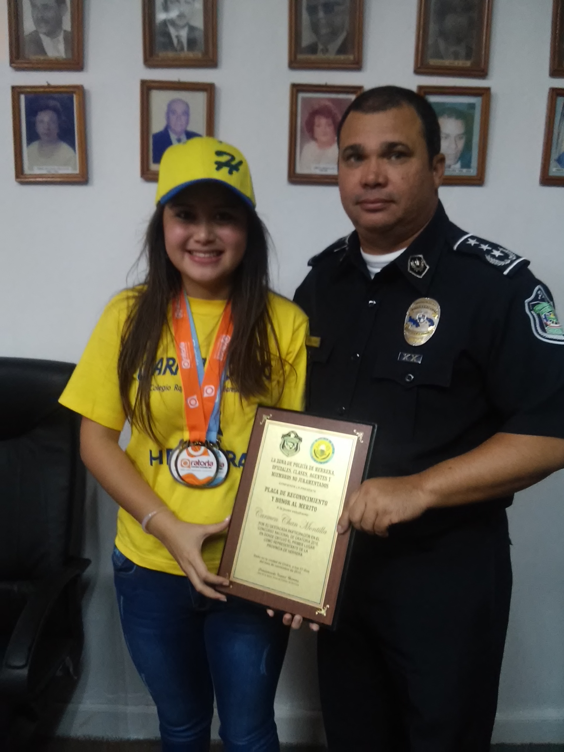 POLICÍA NACIONAL ENTREGA PLACA DE RECONOCIMIENTO A CAMPEONA EN ORATORIA