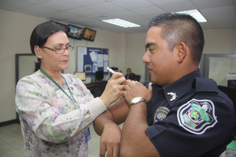 Jueves, 17 de julio de 2014 a las 10:00 am Como parte de las acciones preventivas de salud funcionarios que laboran en el Departamento Comunicación y Proyecto de la Policía Nacional, Sede de Ancón, fueron vacunos contra el virus de la influenza, para evitar posteriores enfermedades... |
