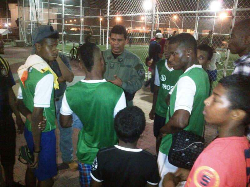 POLICÍA EN COLÓN PARTICIPA EN JUEGO DE FÚTBOL CON JÓVENES DE LA COMUNIDAD