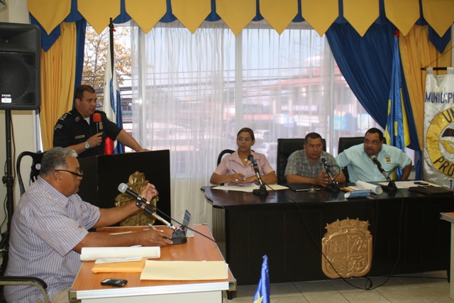 Miércoles, 05 de febrero de 2014 a las 5:30 pm El Subcomisionado Ismael Herrera, jefe de la Sexta Zona de Policía de Herrera se presentó ante los Concejales del distrito de Chitré como el nuevo Jefe de la zona, en medio de una cortesía de sala que se le concedió en la reunión del Concejo Municipal. |