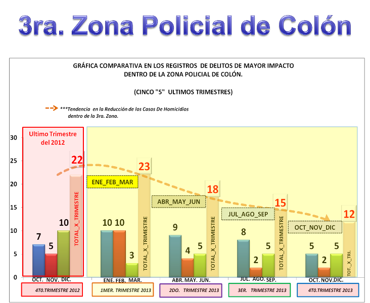 Lunes, 06 de enero de 2014 a las 9:00 am En una grafica descriptiva la tercera zona policial de Colón, presentó por trimestre desde los tres últimos meses del 2012...