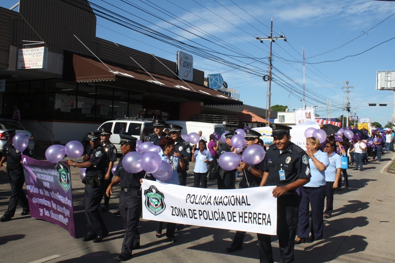 Lunes, 25 de noviembre de 2013 a las 4:18 pm Unidades administrativas de la Zona de Policía de Herrera participaron este lunes 25 de noviembre en la caminata en conmemoración del Día Internacional de la Eliminación de la Violencia contra la mujer la cual se realizó en la ciudad de Chitré. |