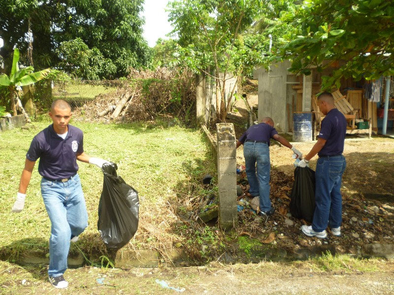 Viernes, 25 de octubre de 2013 a las 3:00 pm Una jornada de limpieza se realizó en el sector tres de Las Margaritas en el distrito de Chepo, por las unidades de la Zona de Policía de Panamá Este con el propósito de erradicar los índices de infestación del mosquito transmisor del dengue y de otras alimañas. |