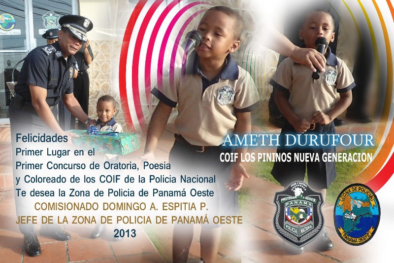 Viernes, 11 de octubre de 2013 a las 11:00 am Con el encanto de todo infante y la firmeza de su carácter AMETH DURUFOUR, envolvió con sus cálidas palabras enmarcadas en un discurso orientador a todos los presentes en especial al jurado calificador del primer concurso de oratoria, |