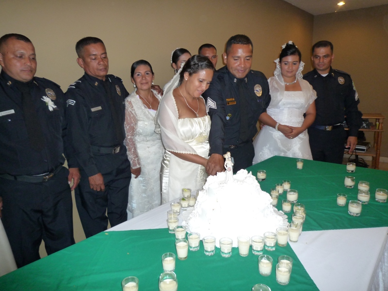 Martes, 27 de agosto de 2013 a las 9:13 am Siete unidades de la Policía Nacional prometieron fidelidad y amor eterno a sus respectivas parejas en la celebración de un matrimonio múltiple.. |