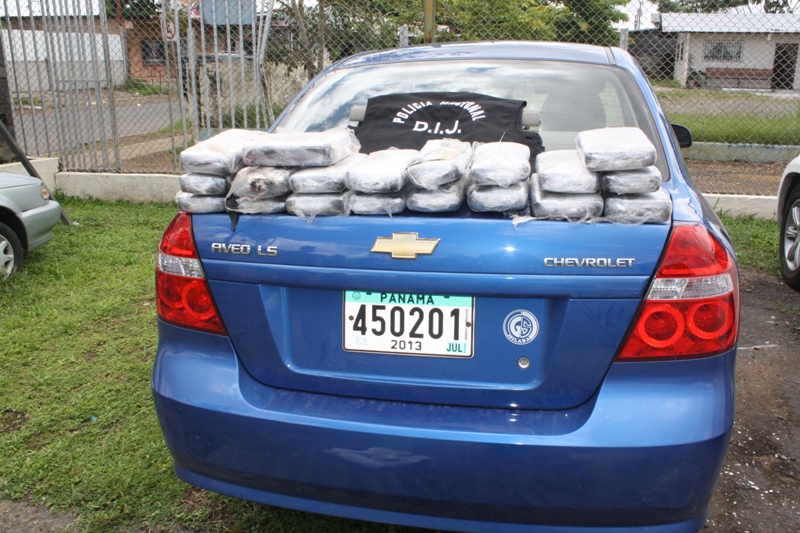 Lunes, 12 de agosto de 2013 a las 1:11 pm Unidades de la Dirección de Investigación Judicial DIJ de servicios en el Puesto de Control Integral de Guabala, ubicado en Tolé, provincia de Chiriquí decomisaron en horas de la noche de este viernes 9 de agosto, 19 paquetes de supuesta cocaína, que estaban dentro de un vehículo Chevrolet Aveo de color azul metálico y retuvieron a dos personas; entre ellos menor de edad. |